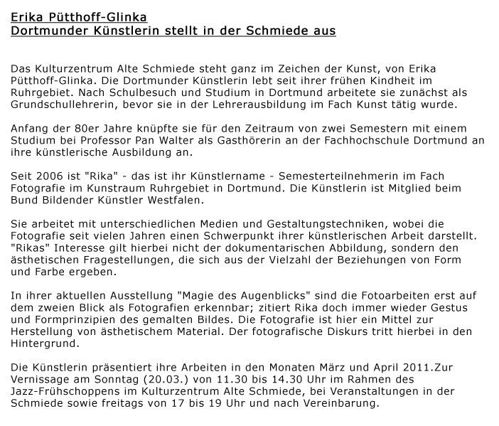 Einzelausstellung im Kulturzentrum "Alte Schmiede" in Dortmund.